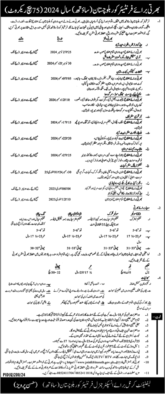 Join Frontier Corps Balochistan | GD Soldier Jobs 2025 | Eligibility & Application Process