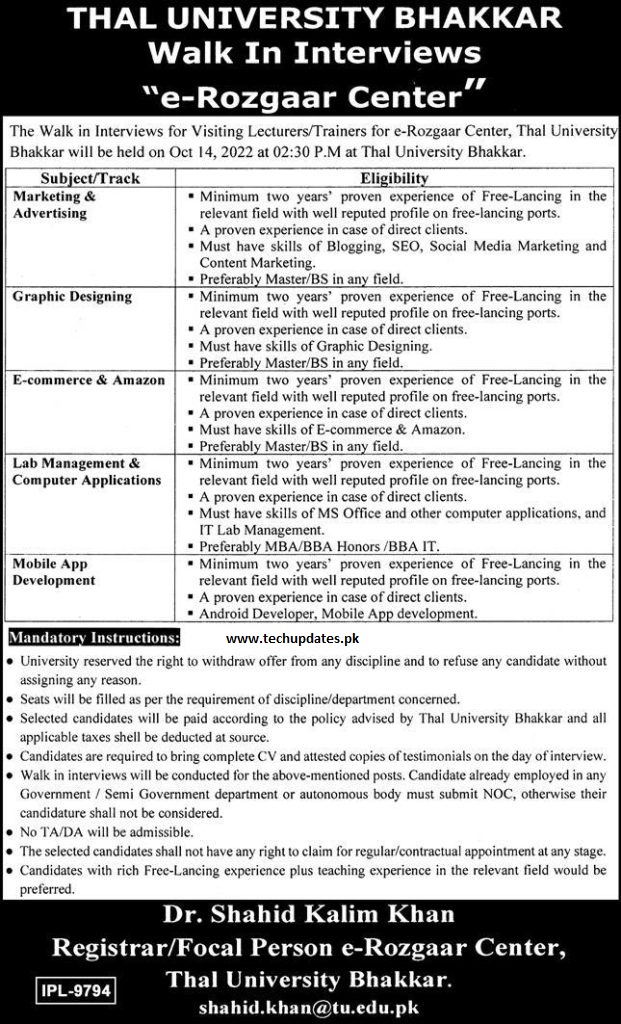 How to Apply for Thal University Bhakkar Jobs October 2022, Walk in Interview for Job